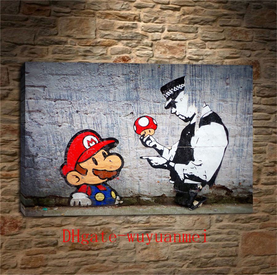 Awkward Styles Mario And Policeman Poster Art Prints Banksy Graffiti Art Banksy Fans Gifts Banksy Mario Art Painting Unframed Art Picture Banksy Fans Home Decor Art Lovers Gifts British Street Art