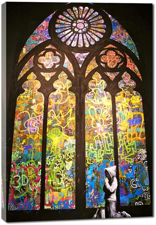 Banksy Praying Boy In Front Of Graffiti Church Window Street Art Banksy Stained Glass Sticker Teepublic