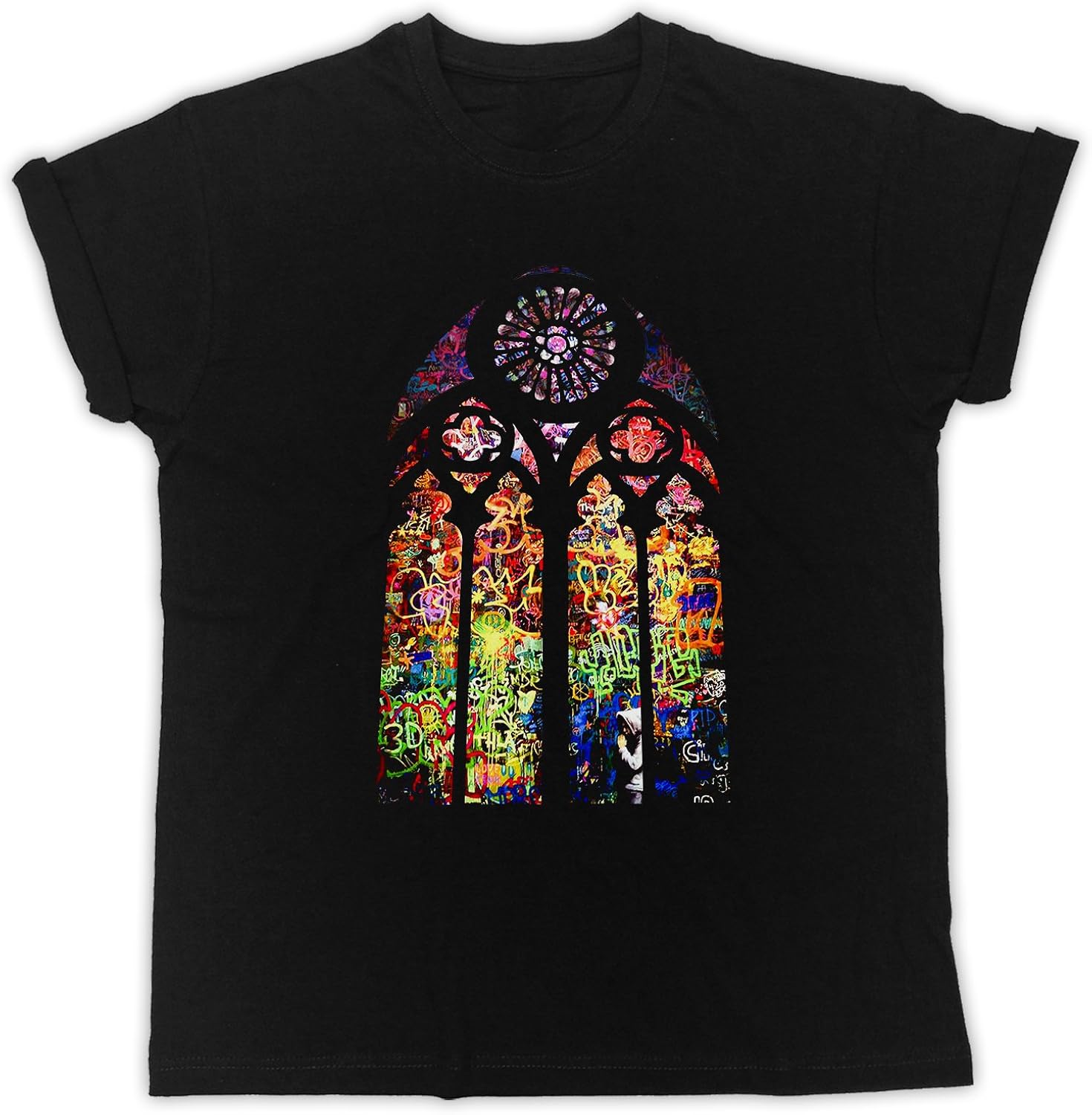 Banksy Stained Glass T Shirt Church Window Graffiti Urban Art Men Women Tshirt Large Black Amazon Co Uk Clothing