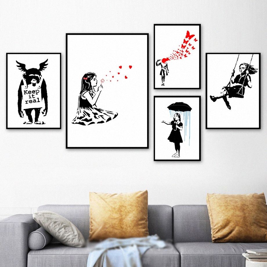 2020 Banksy Graffiti Abstract Umbrella Girl Orangutan Satire Wall Art Canvas Painting Nordic Poster And Print Wall Picture Home Decor Jk6b From Walmarts 29 03 Dhgate Com