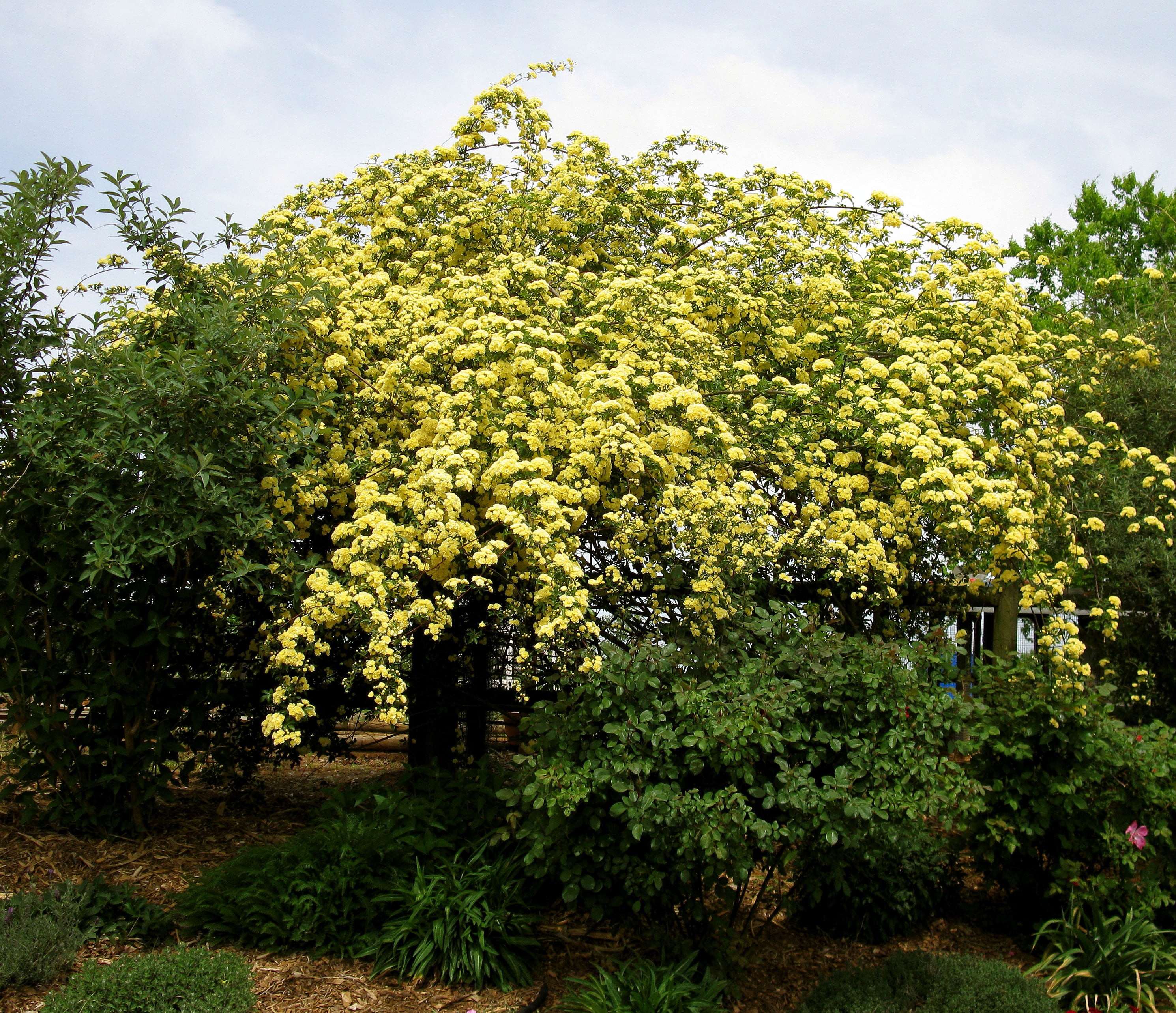 Amazon Com 2 Gallon White Lady Banks Rose Climbing Rose Small Fragrant Double White Blooms Vigorous Growing Thornless Vine Great On Fence Or Trellis Garden Outdoor
