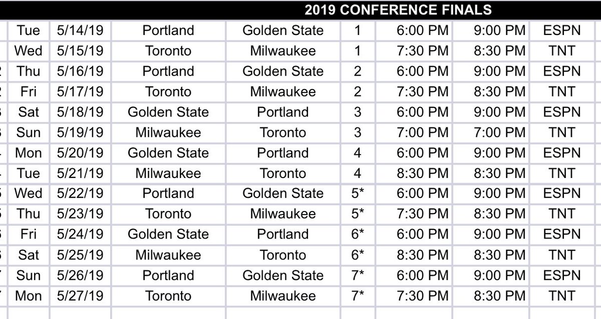 Nba Playoffs 2019 Conference Finals Schedule Full List Of Dates Times Sports Love Me