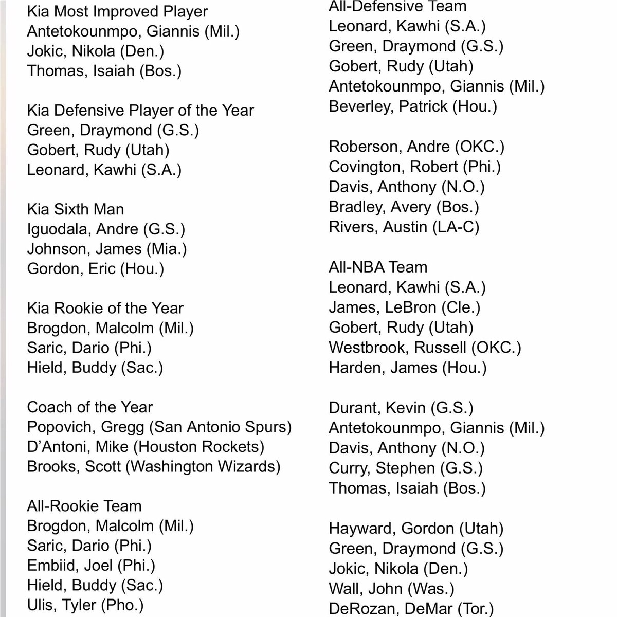 Nba Awards Show 2019 Winners Voting Results And Twitter Reaction Bleacher Report Latest News Videos And Highlights