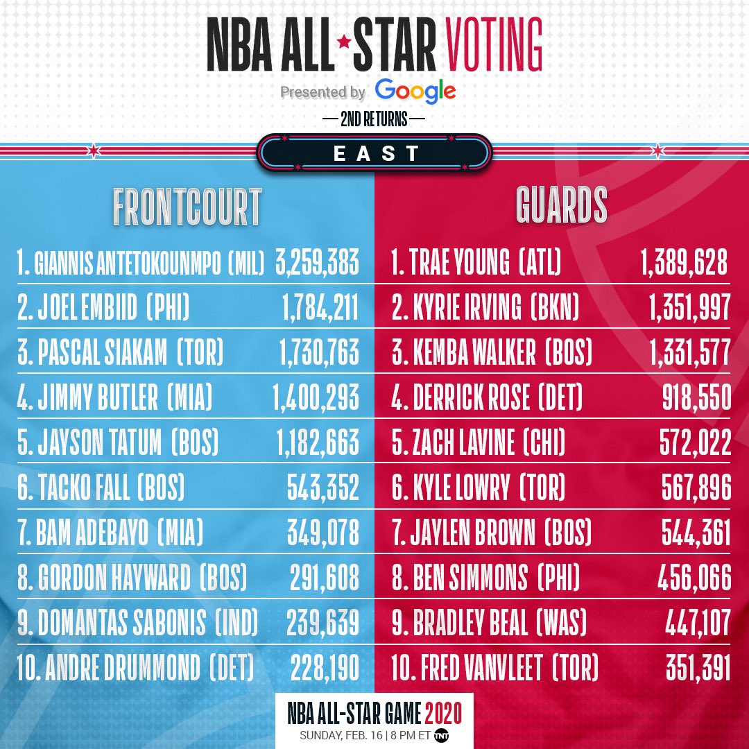 Nbaallstar 2021 On Twitter The Second Returns Of Nbaallstar Voting 2019 Presented By Google Vote On Https T Co R6fbo5lsas The Nba App Or By Searching For Your Favorite Player Or Team On Google Vote