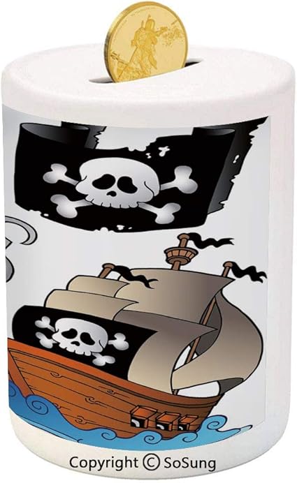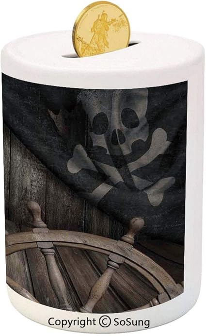 Money Box Jolly Roger Bank Wood Piggy Bank Pirate Piggy Caja De Dinero Decoracion De Piratas Cajas Decoradas