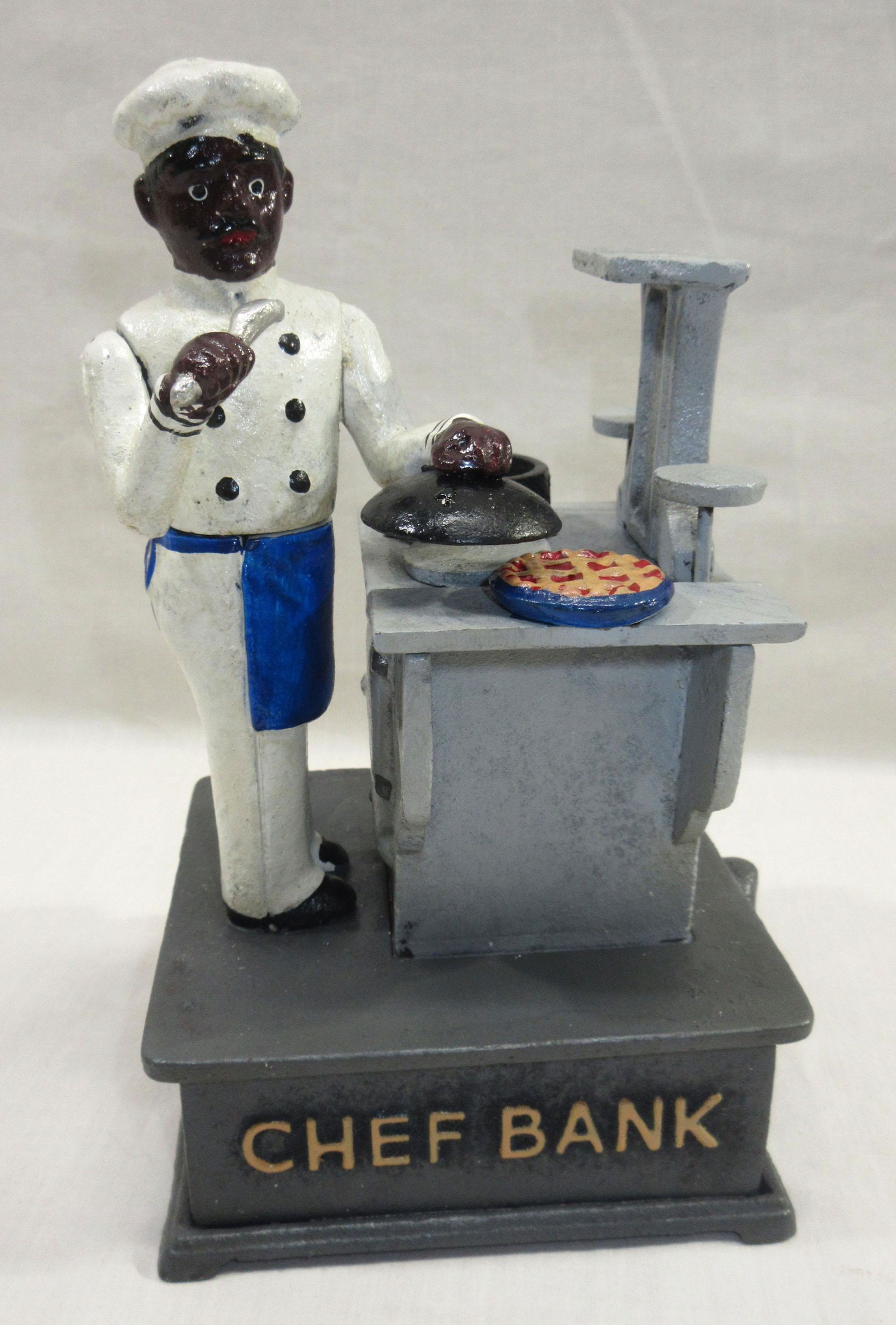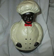 Antique Cast Iron Black Americana Jolly Chef Baker Cook Coin Still Bank Exc
