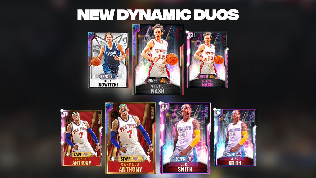 Nba 2k21 Myteam On Twitter New Dynamic Duos Are Here Run With Steve Nash Boosted To Go With Dirk Melo Boosted To Go With J R Smith Boosted To Glitched Pd And