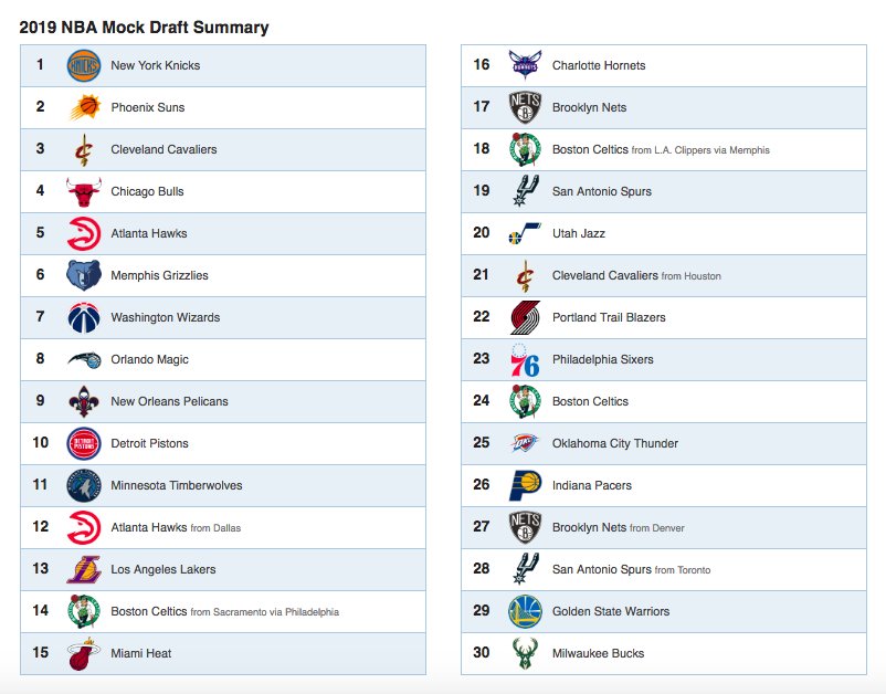 2019 Nba Draft Order See The Order Of All 60 Picks And Which Teams Have Them Cleveland Com