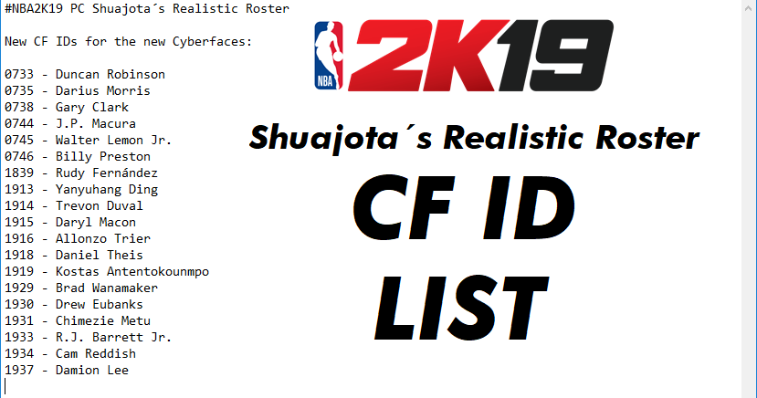 Nba 2k19 Cyberfaces Portraits Ids List For Shuajota S Realistic Roster Shuajota Your Site For Nba 2k Mods