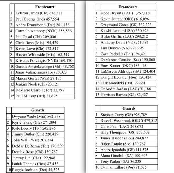 Bleacher Report On Twitter The Latest 2016 Nba All Star Voting Results Kobe Still No 1 Ahead Of Curry And Lebron Https T Co Gjmuzyrrrb Https T Co Somxoilzmh