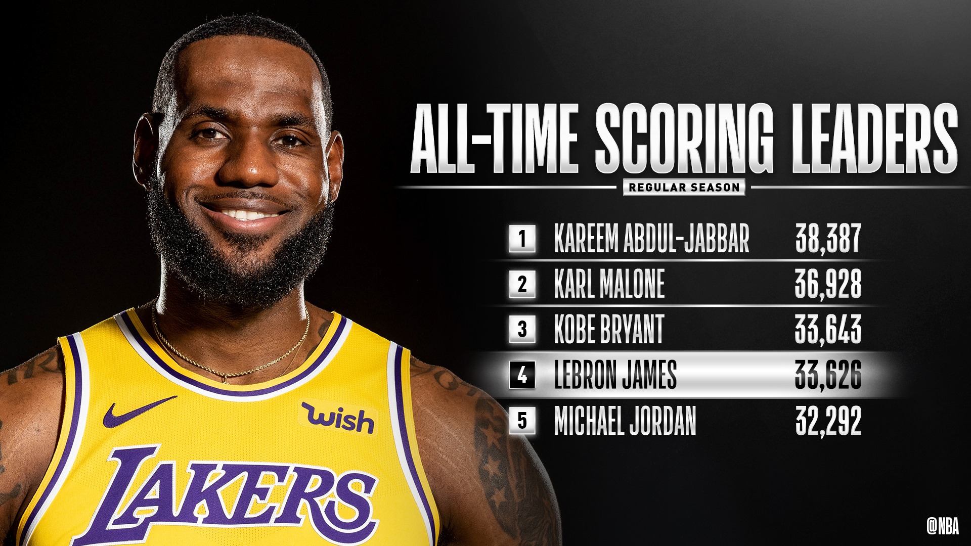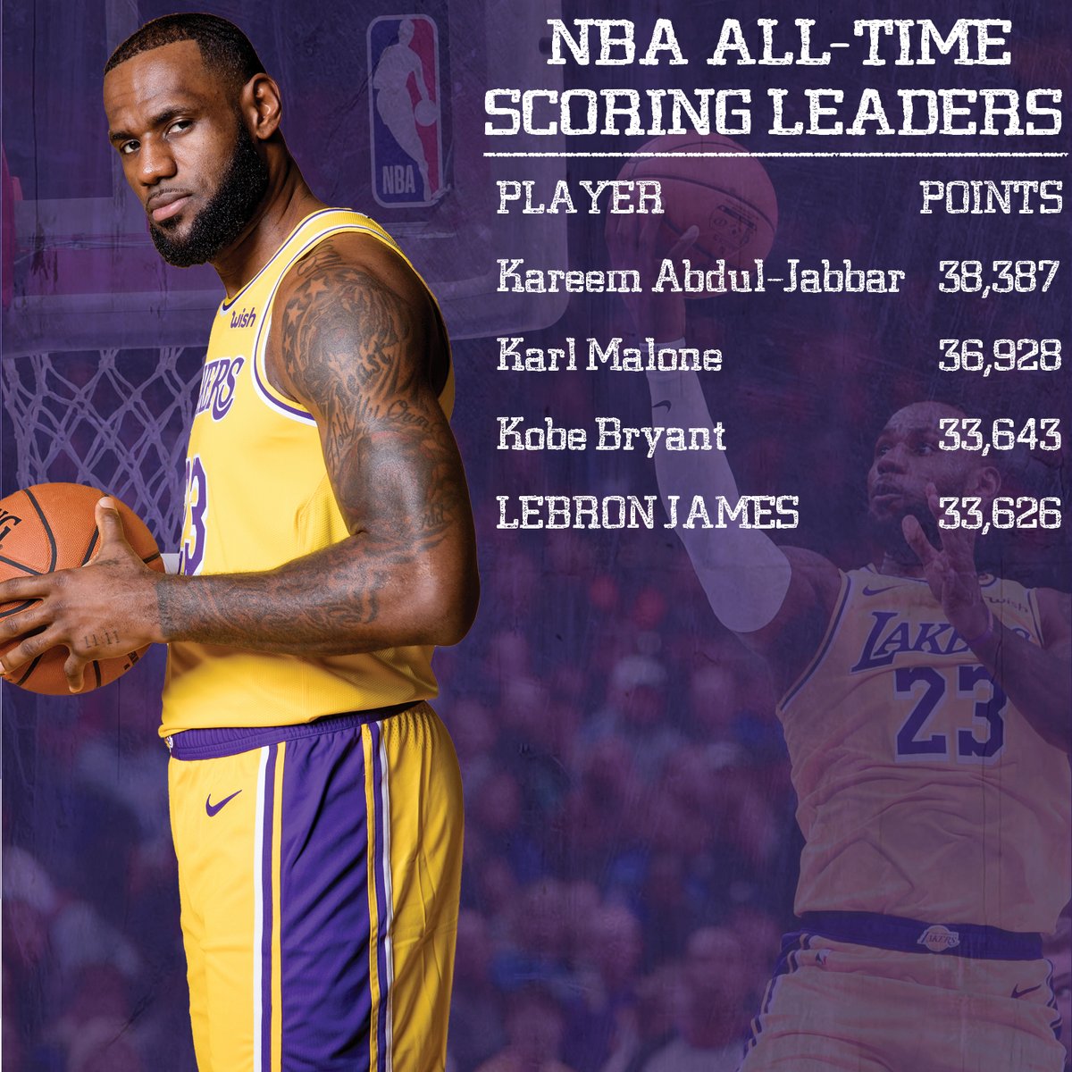 Nba On Twitter Lebron On The Cusp Of History Entering Tonight S Nbaonabc Action 8 30pm Et Kingjames Sits 18 Points From 3rd On The All Time Scoring List Lakers Sixers 8 30pm Et