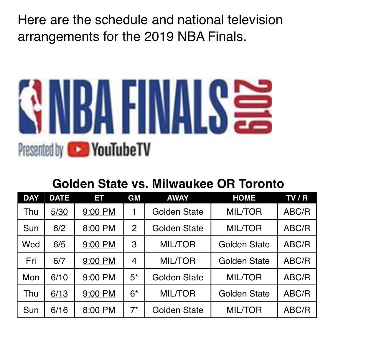 Nba Finals 2019 Full Series Schedule And How To Watch Warriors Vs Raptors Bleacher Report Latest News Videos And Highlights