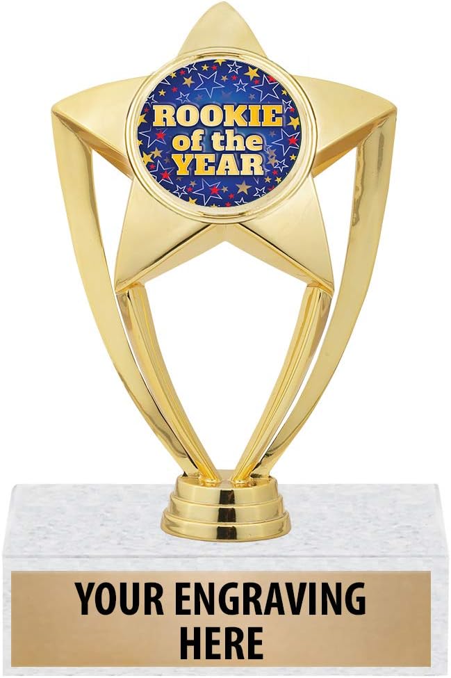 Amazon Com Rookie Of The Year Trophy 6 Gold Star Rookie Recognition Trophy Awards Prime Sports Outdoors