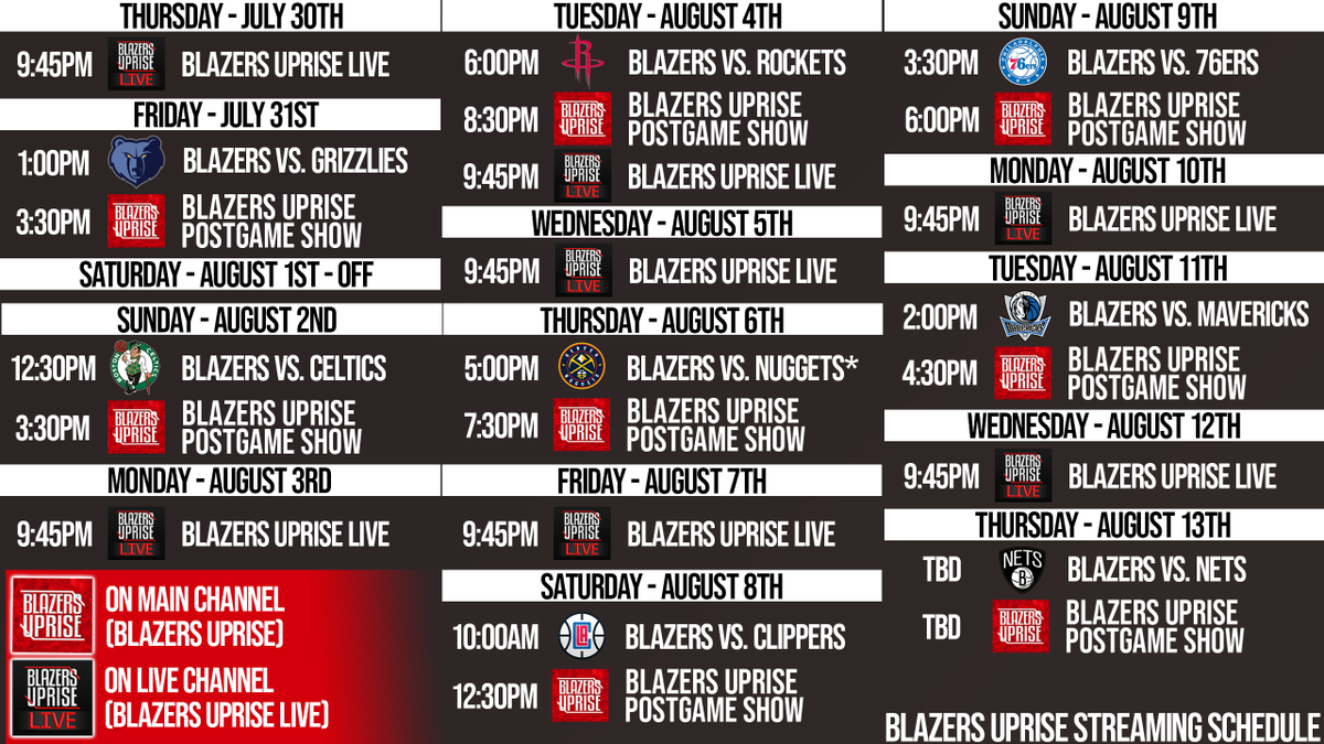 Eric Brandt On Twitter Blazers Uprise Has You Covered During The Nba Restart We Have A Live Stream Scheduled Pretty Much Every Day Over The Next Two Weeks Come Join Us To