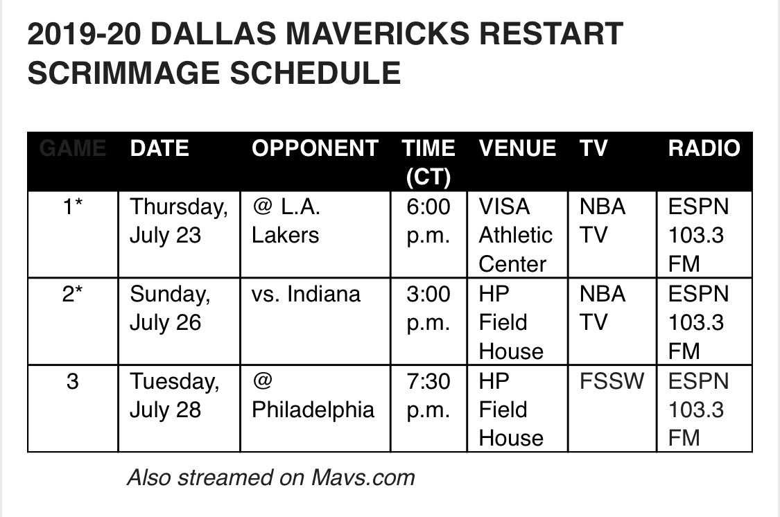 Mike Leslie On Twitter The Mavs Will Start Their 2020 Scrimmage Schedule Against Lebron James And The Lakers On Thursday Night At 6 O Clock Https T Co W5jnalzicz