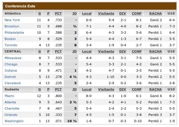 Nba Tabla De Posiciones Al 1 De Diciembre De 2012 Deportivoros