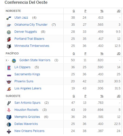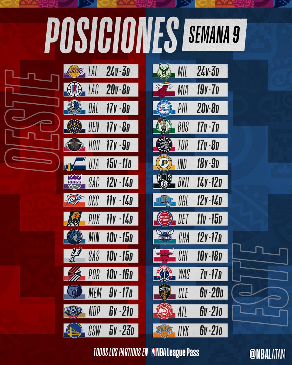 Pasion Por El Baloncesto On Instagram Posiciones Conferencia Oeste Nba Fanaticobasket Pasi Los Angeles Clippers Dallas Mavericks Golden State Warriors