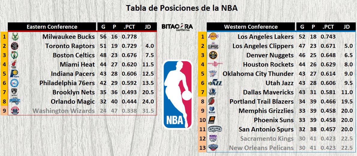 O Xrhsths Bitacora Deportiva Sto Twitter Nba Tabla De Posiciones Por El Momento Solo 4 Equipos Estan Clasificados A Los Playoffs Interesante Disputa De La Division Noroeste De La Conferencia Del