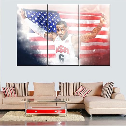 Amazon Com Lebron James Wall Art American Flag Paintings Living Room Nba Sports Decorations 3 Panels Printed On Canvas Basketball Paintings Contemporary Artwork Framed Ready To Hang 40h X 20wx3 Everything Else