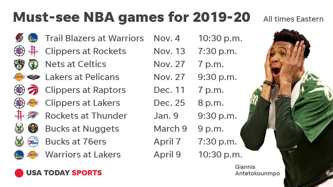 Usa Today Sports On Twitter Now That We Know The Schedule For The 2019 20 Nba Season It S Time To Pencil In Those Must Watch Games Https T Co 9z4oiu8ojl Https T Co Zrvlzu17ih