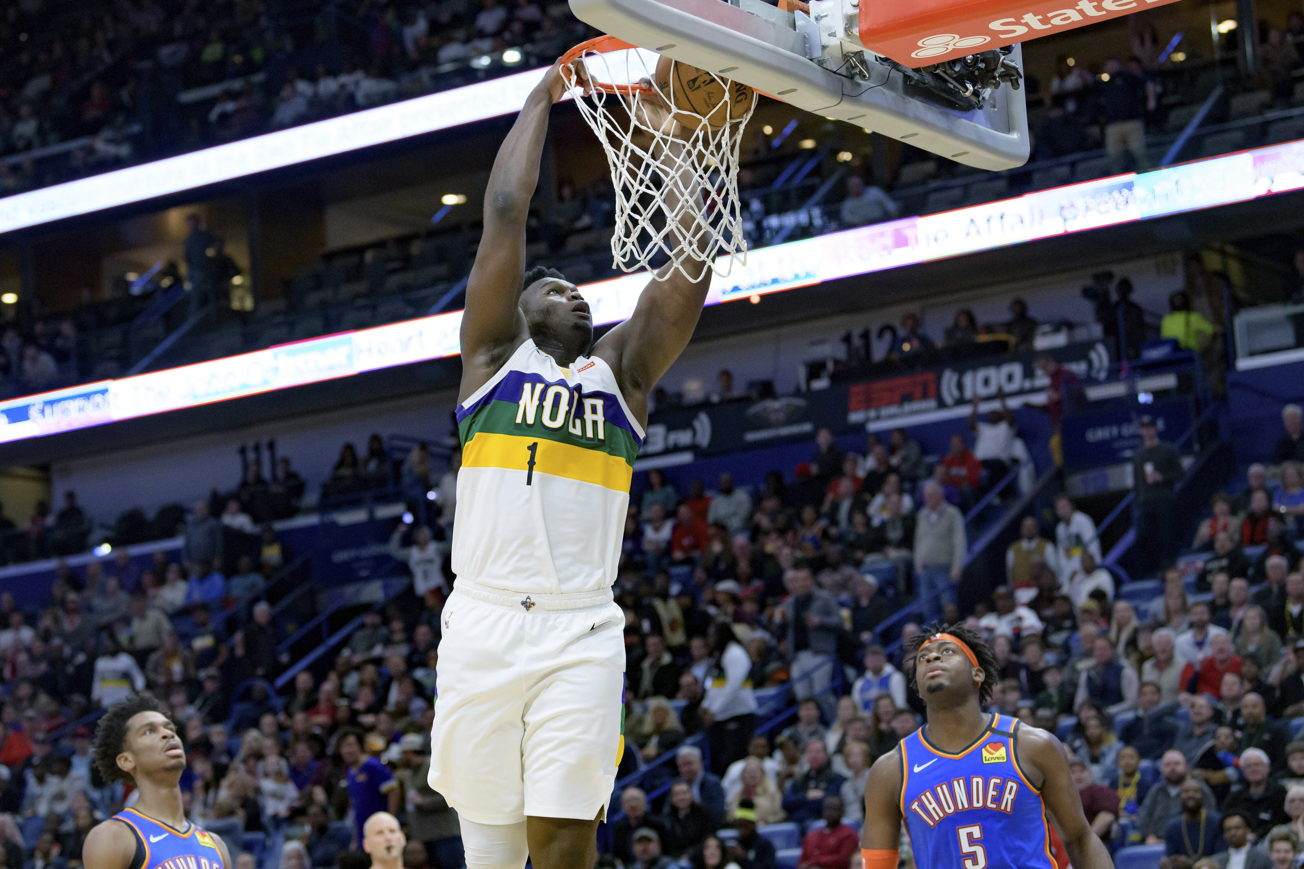 Watch Zion Williamson Get His First Nba Dunk An Alley Oop Finish From Jrue Holiday Probasketballtalk Nbc Sports